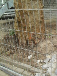 Durch das Aufstellen von Baumschutzzäunen und Wurzelvorhängen wird der Baum physisch vor direkten Schäden durch Maschinen und Bauaktivitäten geschützt.