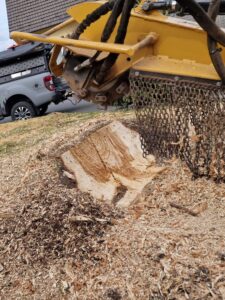 In der Regel wird der Baumstumpf bis zu 20-30 cm unter Bodenniveau gefräst, um sicherzustellen, dass alle Hauptwurzeln entfernt werden.